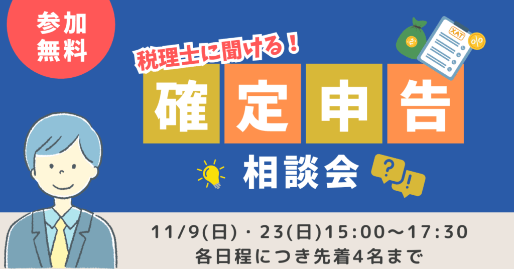 - 11/9(日)・23(日)に確定申告に向けた無料オンライン相談会を開催します!皆さん、こんにちは。福岡市を中心に活動しています若手公認会計士・税理士の奈須大貴です。 確定申告に向… 続きを読む: 11/9(日)・23(日)に確定申告に向けた無料オンライン相談会を開催します!